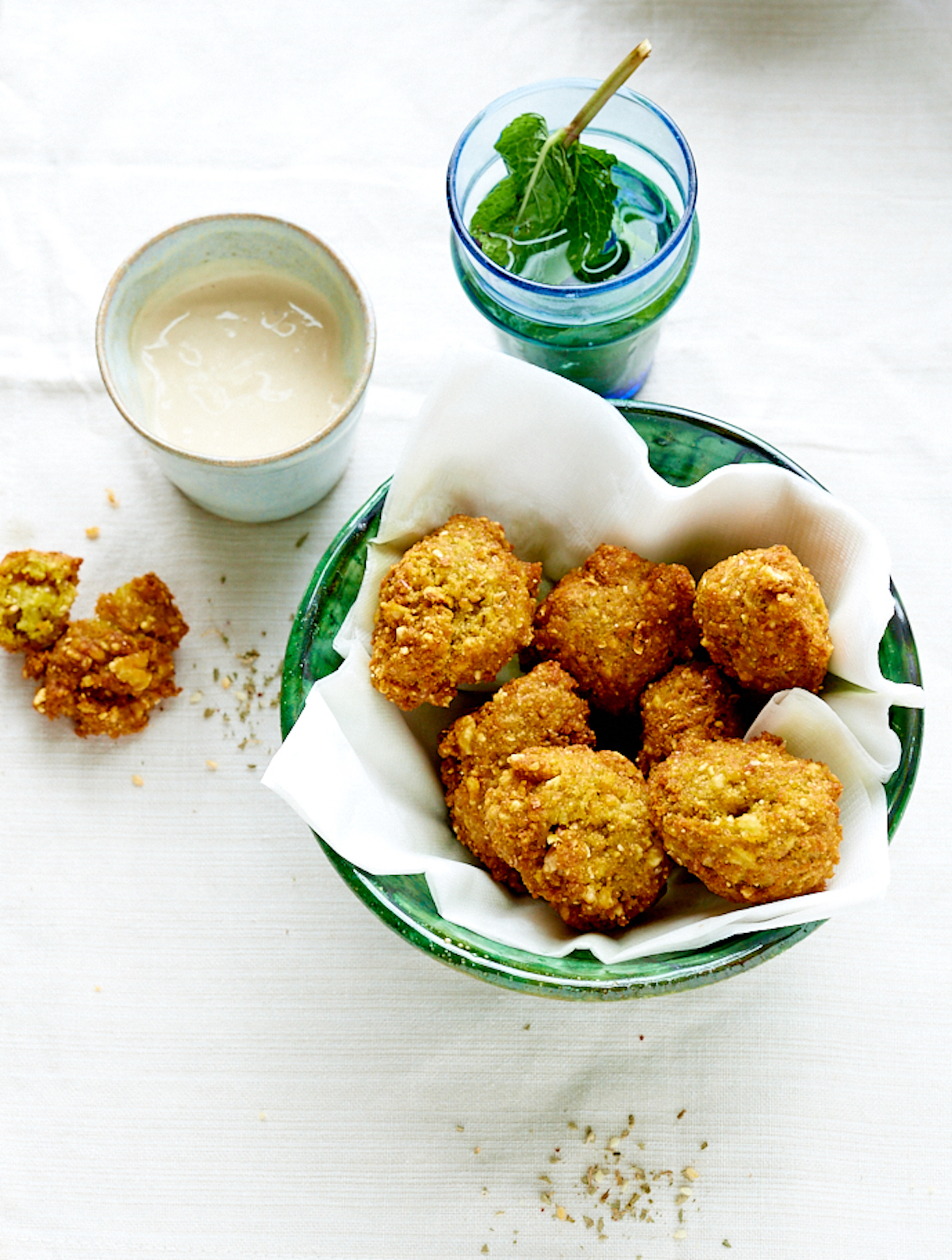 Ronald: “Waar de doorsnee falafel, gemaakt van kikkererwten, naar onze mening vaak een wat droge hap is, is deze variant van popcorn heerlijk luchtig en sappig. We aten hem in Restaurant Neni in Amsterdam en hebben bij thuiskomst meteen het recept opgesnord.”