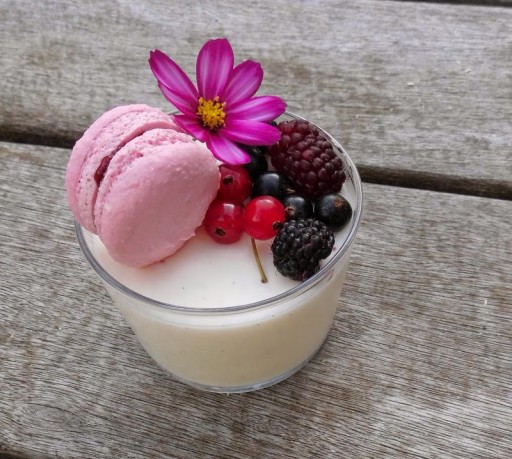 Laat de panna cotta zeker twee uur opstijven. Serveer met vers fruit, eetbare bloemen of een mooie macaron.