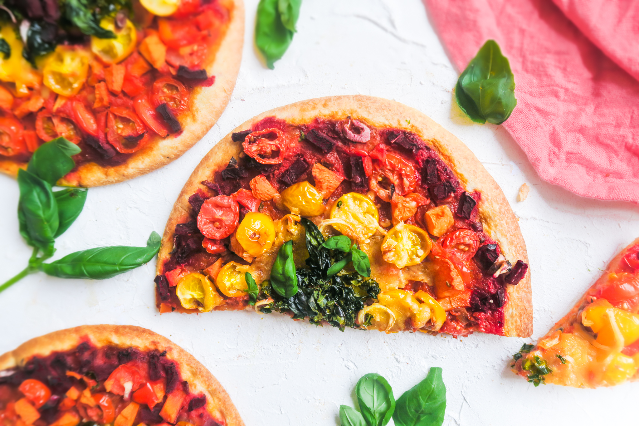 Weigeren je kinderen om groenten te eten en zit je met de handen in het haar? Probeer dan eens deze regenboogpizza’s. Vol kleur en vol smaak, maar stiekem toch ook met een hoop groenten. Dat zijn twee vliegen in één klap!