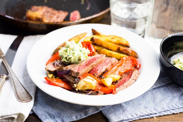 Dit recept is simpel en perfect voor een doordeweekse dag: ribeye met huisgemaakte frietjes en paprika.