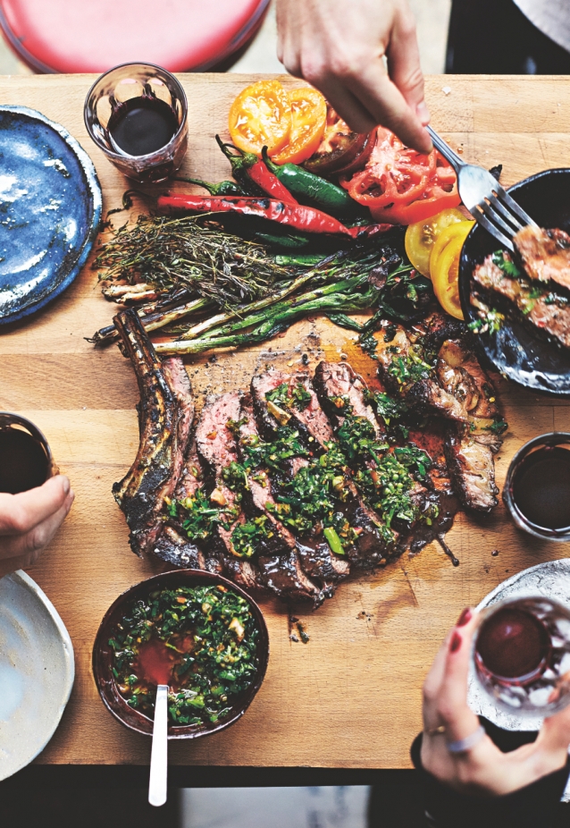 Tip: vraag je slager om ribeye steak met bot die minstens 28 dagen heeft gerijpt. De steak is het lekkerst wanneer je hem bereidt op houtskool, maar het lukt ook wel met een hete koekenpan met dikke bodem. Haal de steaks minstens 1 uur voor bereiding uit de koelkast zodat ze op kamertemperatuur zijn.