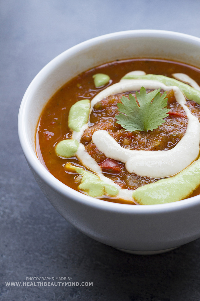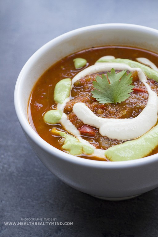 Nu het steeds kouder wordt is deze rijk gevulde tomatensoep het ideale maaltje om op de bank te verorberen. Van de blog Health Beauty Mind.