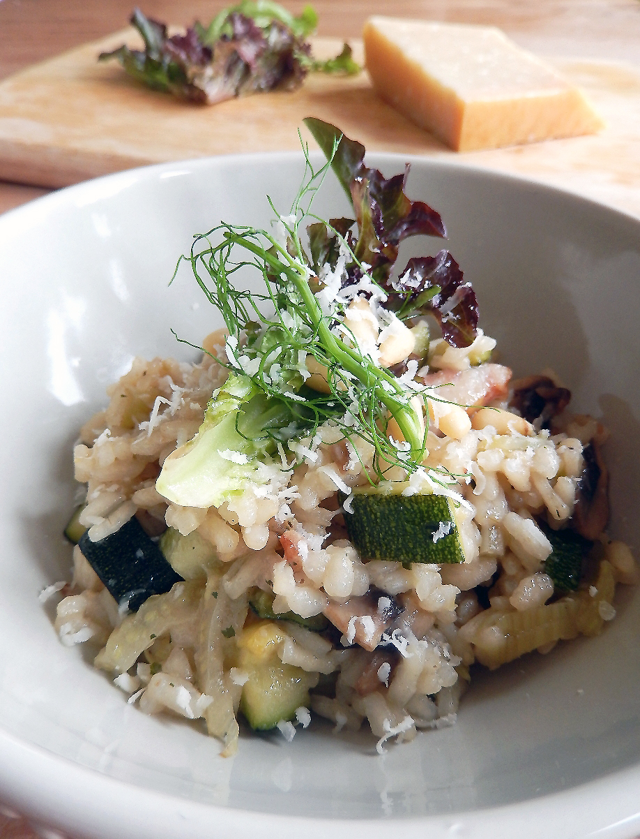 Een heerlijk risottorecept van Marjolein en Charlotte van de (in website Marlottekookt.nl. Geen standaard risotto, maar opgefleurd met venkel, courgette en champignons.