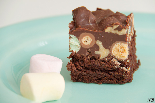 Een heerlijk Amerikaans snackrecept van Caroline: rocky road brownies, met chocolade, marshmallows, noten en nog veel meer. Ook een geweldig toetje, en dit doet het ook heel goed op verjaardagsfeestjes.