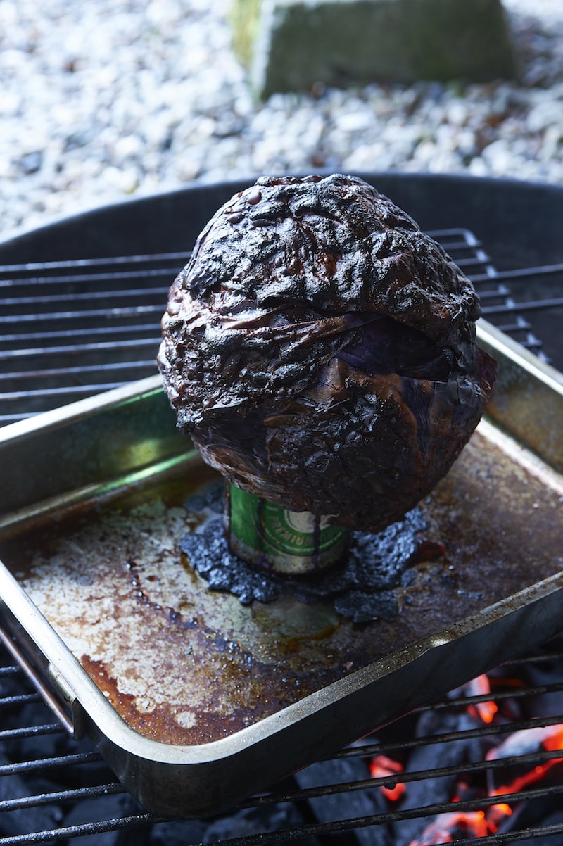 We kennen allemaal wel de bierkip of beer can chicken van de barbecue: een hele kip wordt over een blikje bier geschoven en wordt zo heerlijk mals en sappig. Julius Jaspers heeft in zijn nieuwe boek Simple Smart BBQ een fantastische variant hierop. En het is ook nog eens een superlekker vegetarisch recept voor de barbecue: rode kool met bier!