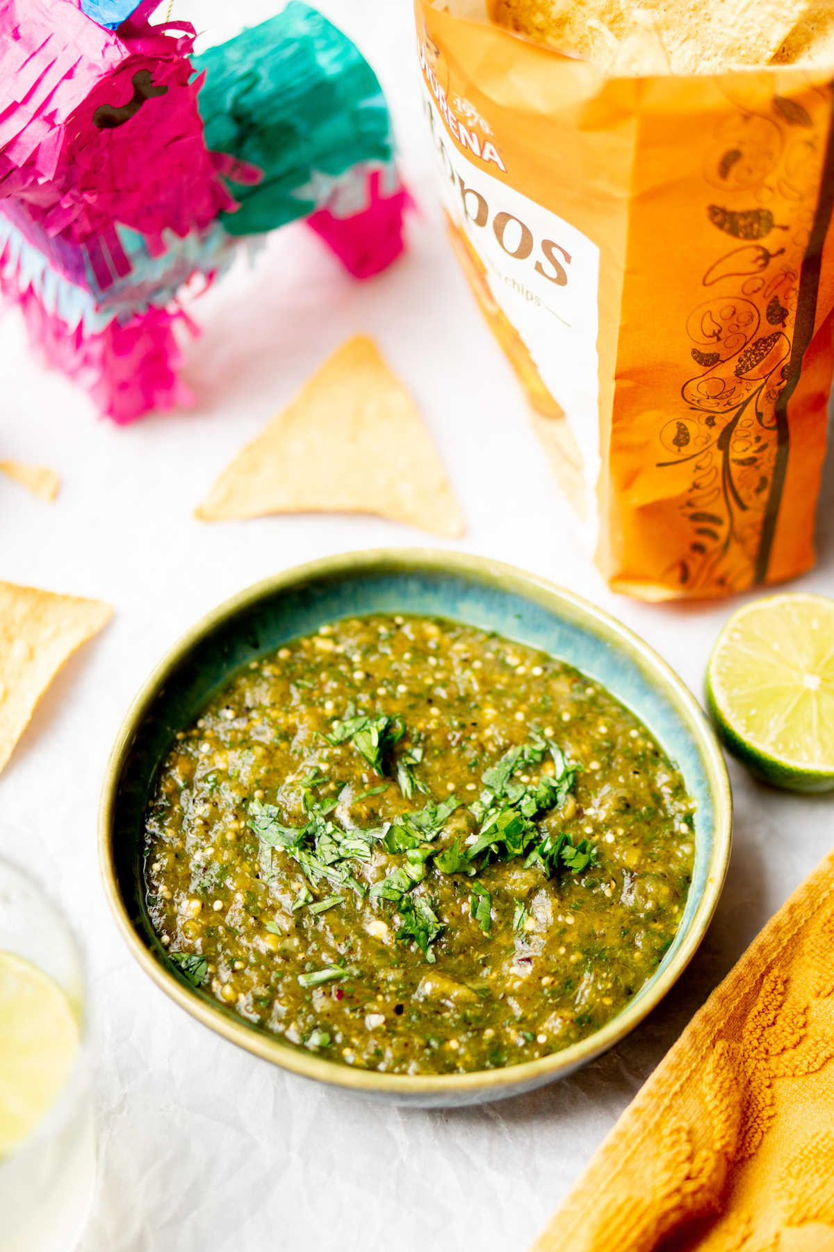 De salsa verde is heerlijk met tortillachips of als saus op tacoās, enchiladas, nachoās en praktisch met Ć”lles⦠(zo lekker dit!).
