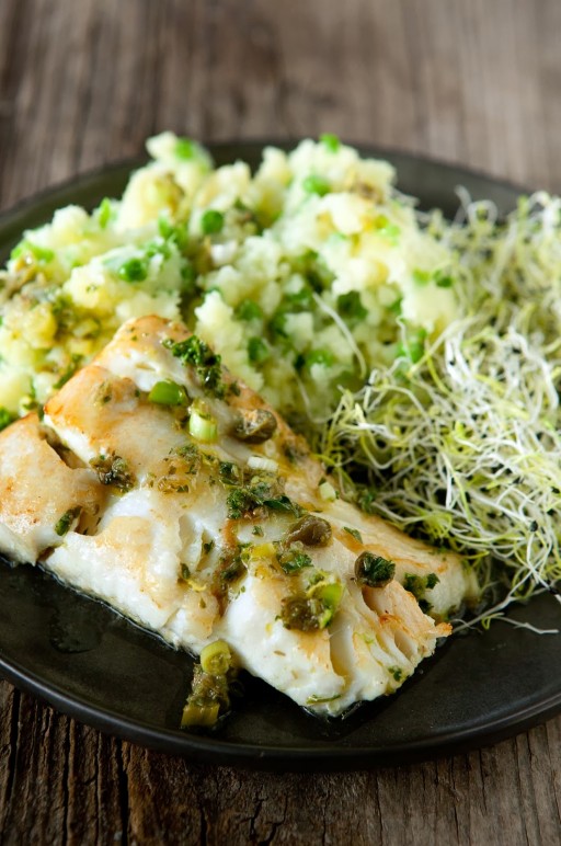 Een heerlijk én makkelijk gercht van een van onze favoriete culy blogs Photo-Copy Ann: schelvis met erwtjespuree.