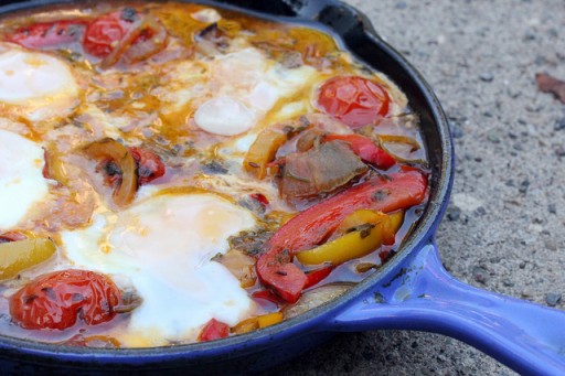 Om een goddelijke shakshuka op tafel te zetten heb je dus eigenlijk maar weinig nodig, maar wat wel belangrijk is dat je een aantal basisingrediënten gebruikt (tomaten, uien, eieren, pepers) én de nodige portie liefde.