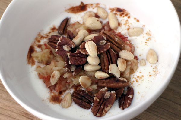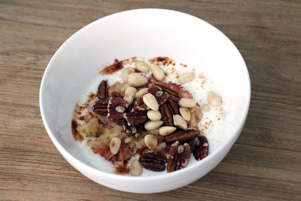 Snelle yoghurt met appel, geroosterde noten & kaneel