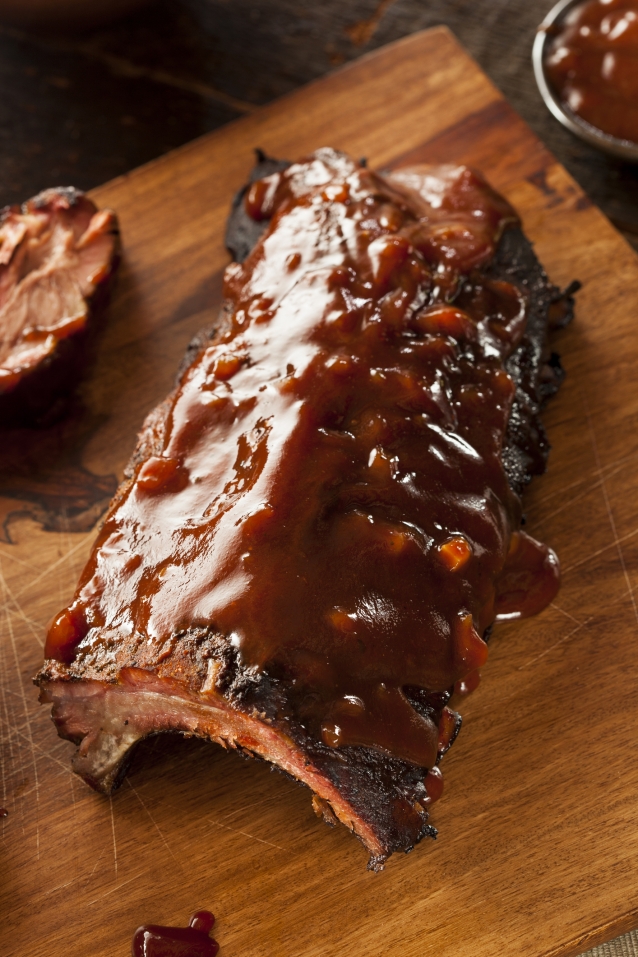 Dek de spareribs af met aluminiumfolie en laat ze in circa 2,5 uur gaar worden. Bestrijk de spareribs met barbecuesaus en leg ze nog even op de barbecue of onder de grill, zodat ze een mooie glanzende laag krijgen.