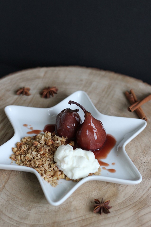 Een heerlijk recept van Angelina, foodblogger van Peekinside.nl: stoofpeertjes met havermoutcrumble & yoghurt.