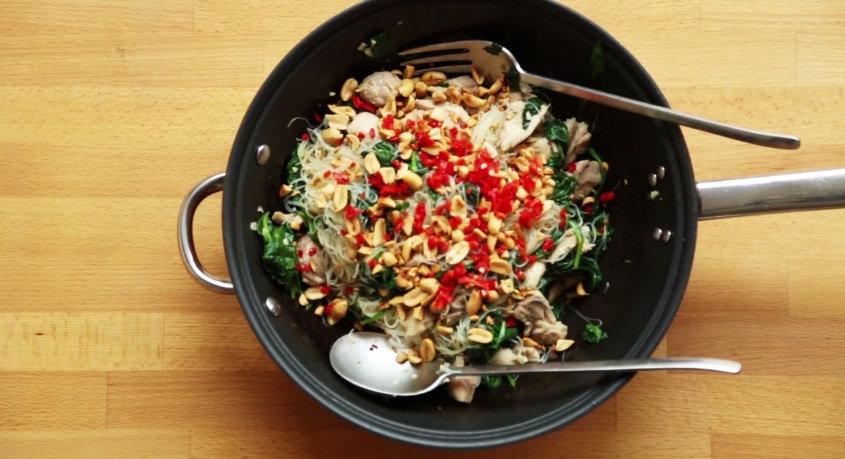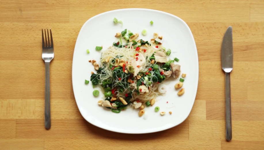Okee, we hebben het één en ander versneld, maar… you get the point. Noodles met kip in een handomdraai! De ingrediënten vind je in de boodschappenlijst hiernaast.