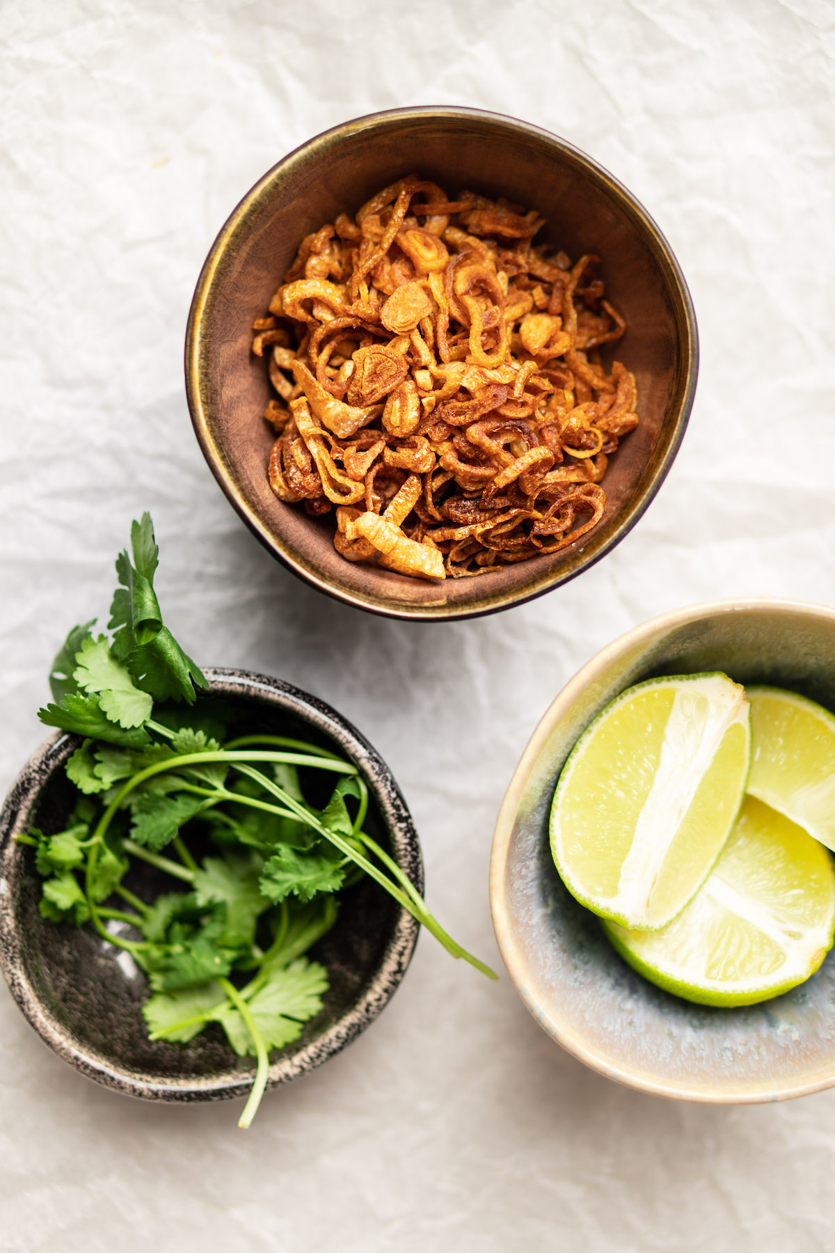 De vissaus maakt de soep niet langer vegan, maar je kunt ‘m weglaten of vervangen door een scheutje sojasaus of vegan vissaus.