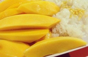 Een heerlijk Thais toetje: sticky rice met mango. Zo zoet en zo lekker! Gelukkig kun je het ook thuis maken.