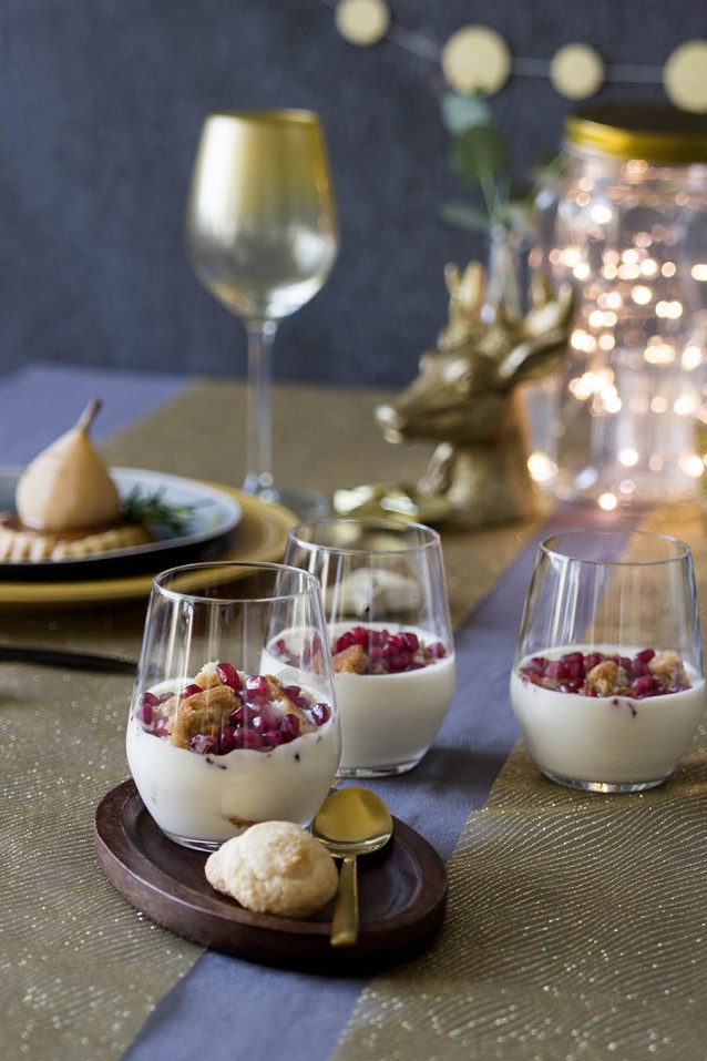 Een heerlijk toetje voor kerst: tiramisu met bitterkoekjes, kaneel en granaatappel. Supersimpel en zo klaar, maar door de prachtige rode granaatappelpitjes een supermooi kerstdessertje.