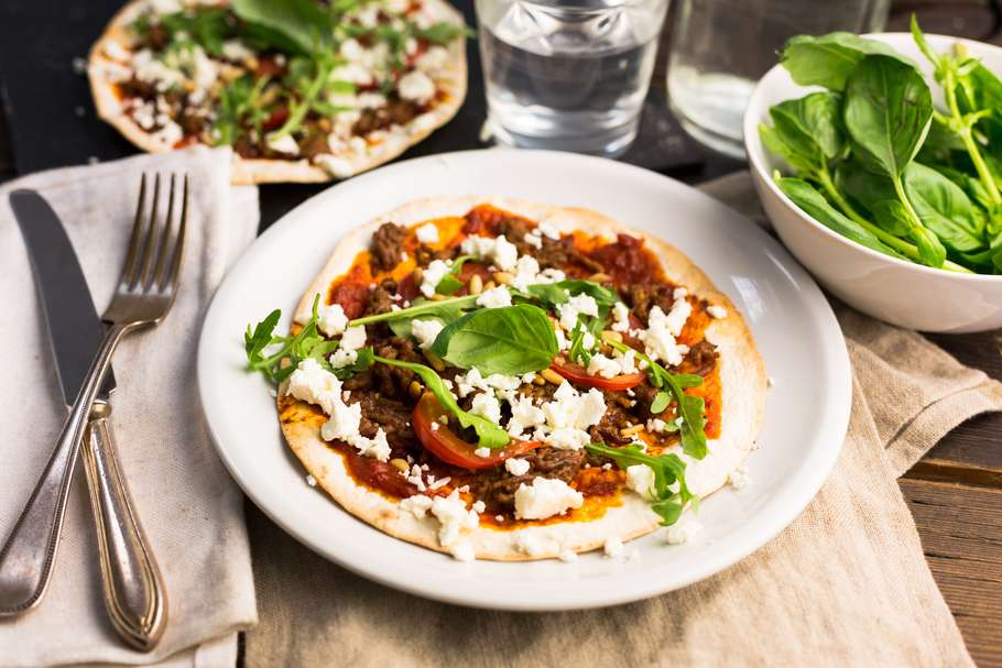 Dit recept is simpel en perfect voor een doordeweekse dag: tortizza’s met feta en gehakt.