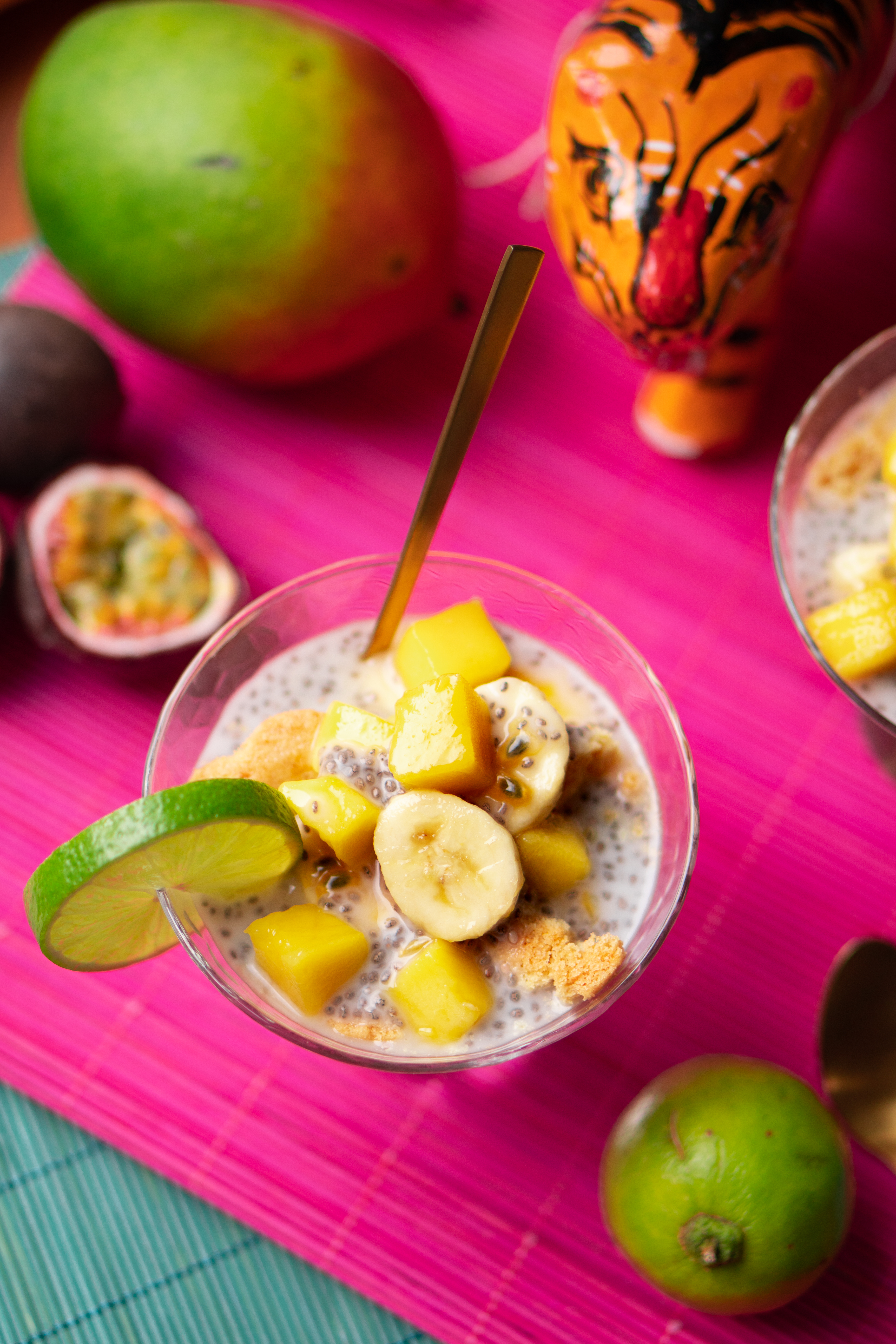 Voor de basis maak je een soort pudding door chiazaad te weken in kokosmelk. Dat moet zeker twee uur tot een nachtje gekoeld staan, maar verder heb je dit makkelijke toetje binnen een handomdraai op tafel staan. Dus: wat let je? Haal de tropen naar je keuken!