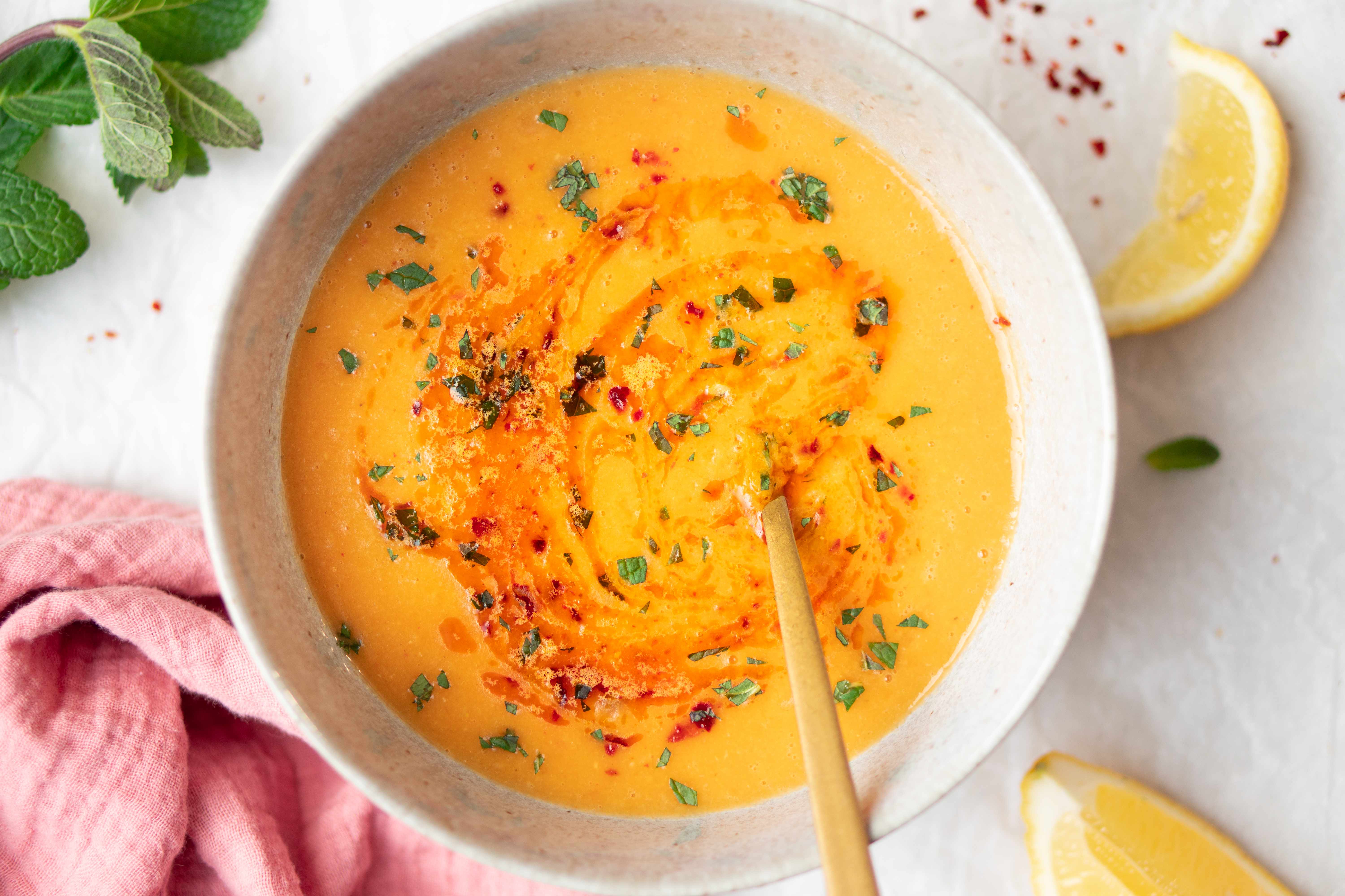 Turkse rode linzensoep met munt, citroen en pul biber: makkelijk en snel klaar