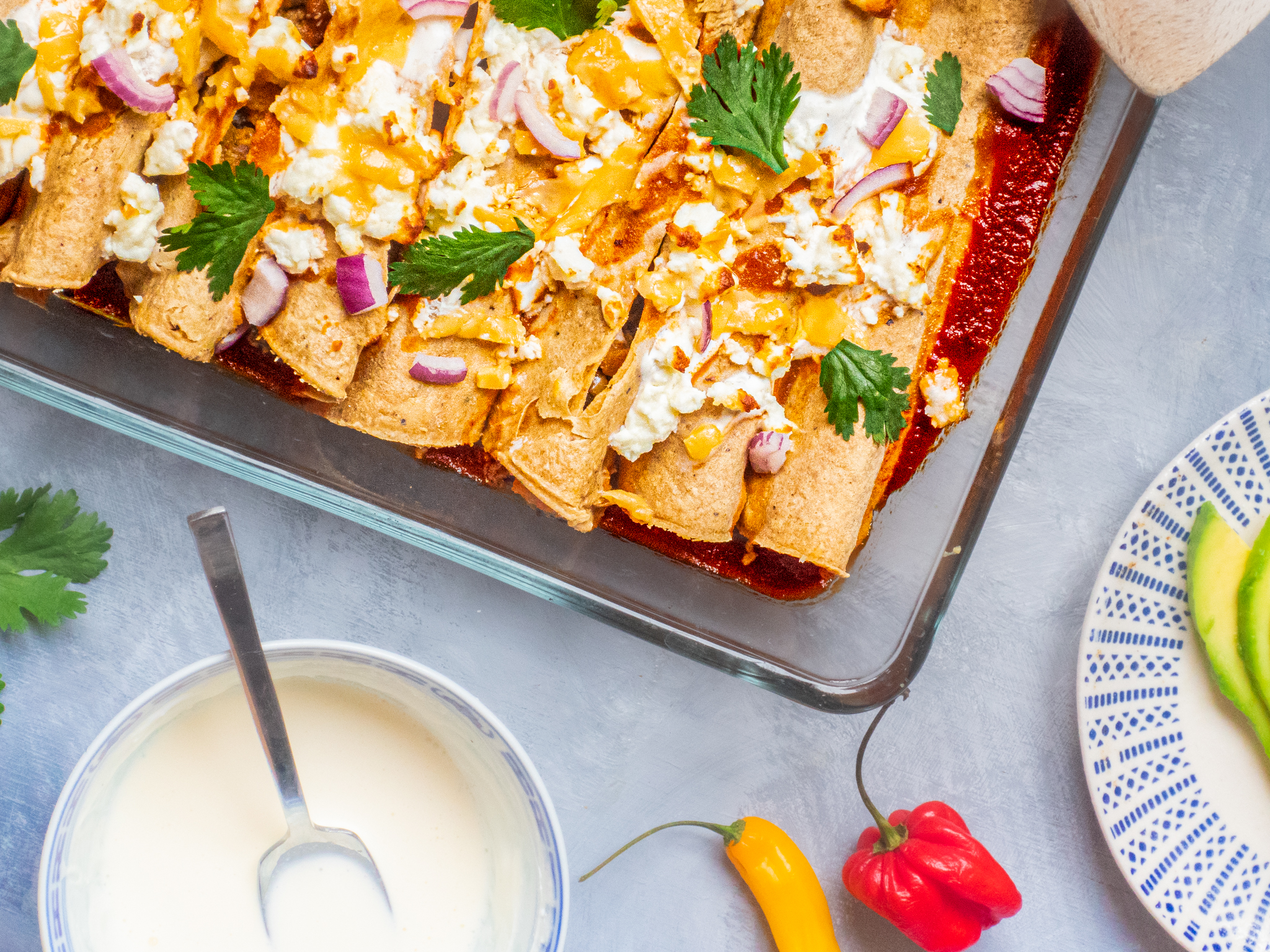 Vega enchiladas met zoete aardappel en zwarte bonen