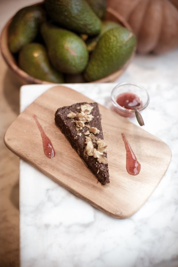 Dit chocolade ‘taartje’ is verrassend gezond en bestaat uit superfoods. Vrij van geraffineerde suiker, boter, bloem, lactose en gluten, en geschikt voor veganisten. Deze treat is behoorlijk vullend, dus snijd vooral niet te grote punten! Dit recept komt van de chefs van Hills & Mills, een heerlijke culinaire hotspot in Delft.