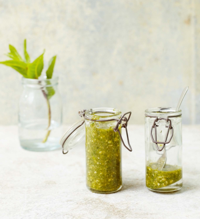 Het nieuwe boek van Ella Mills (voorheen bekend als Ella Woodward) is uit: Elke Dag Deliciously Ella. We mogen een lekker recept uit dit boek delen: verse pesto van munt en cashewnoten.