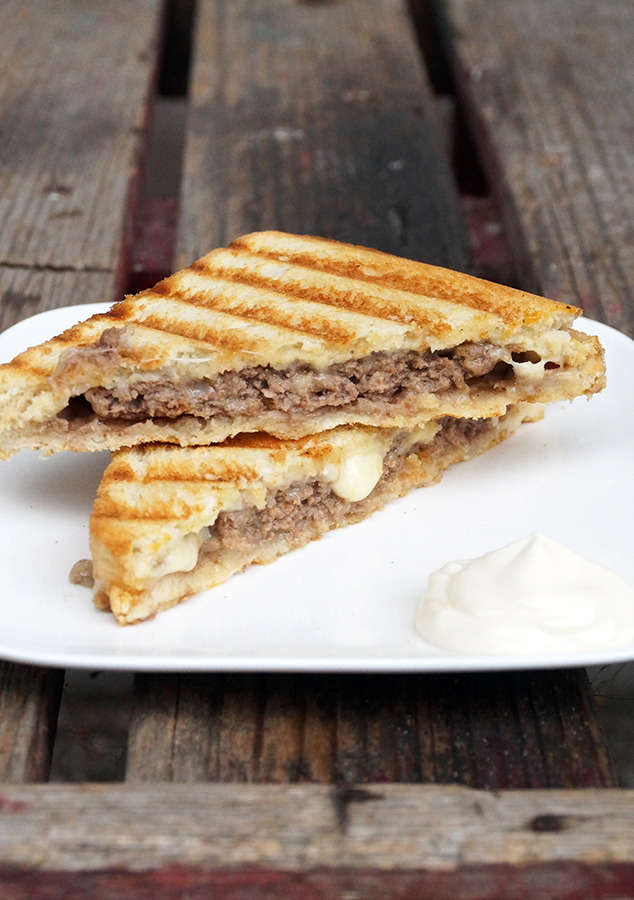 Tip: zet je tosti-ijzer op de laagste stand, zodat het gehakt lang genoeg de tijd heeft om te garen.