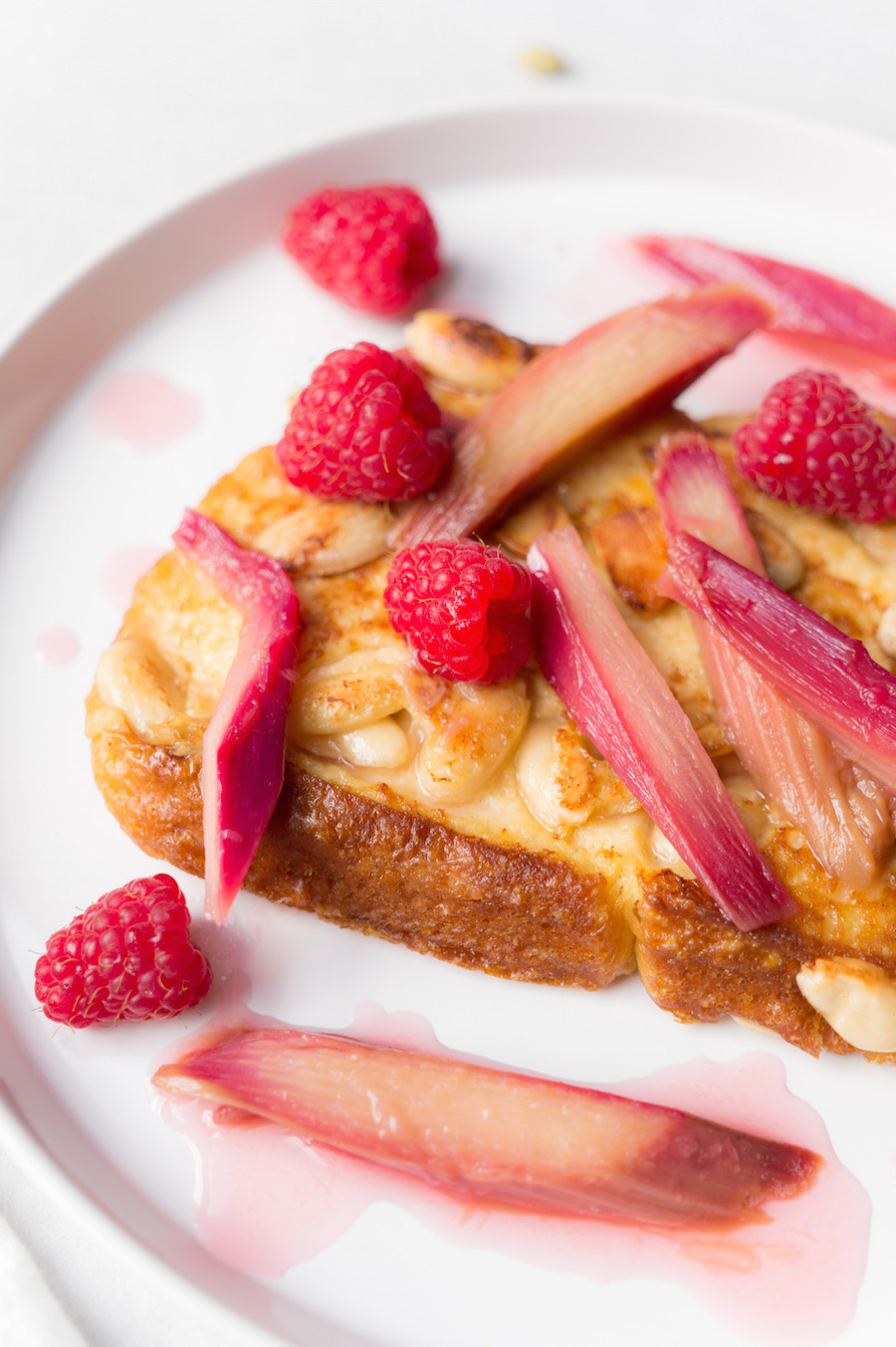 Serveer de wentelteefjes met rabarber en een handje frambozen. En ben je stiekem een zoetekauw, voeg dan gerust nog een beetje maple syrup toe. We won’t tell…