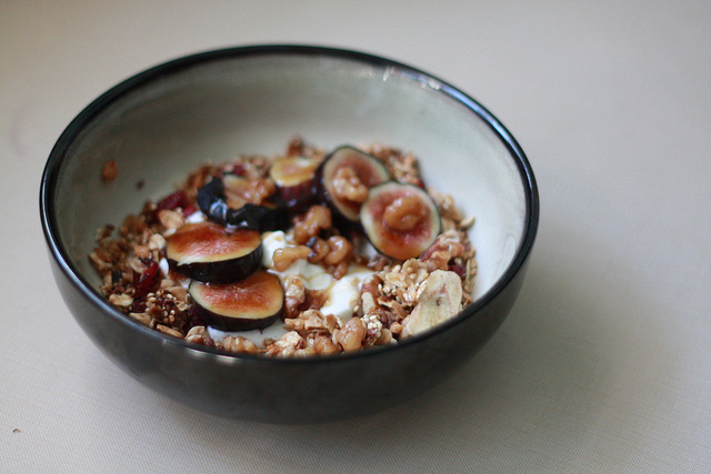Een belangrijk onderdeel van de dag op de Culy-redactie is het ontbijt. Nooit overslaan! Een van onze favoriete ontbijtjes? Deze yoghurt met verse vijgen, honing en walnootjes
