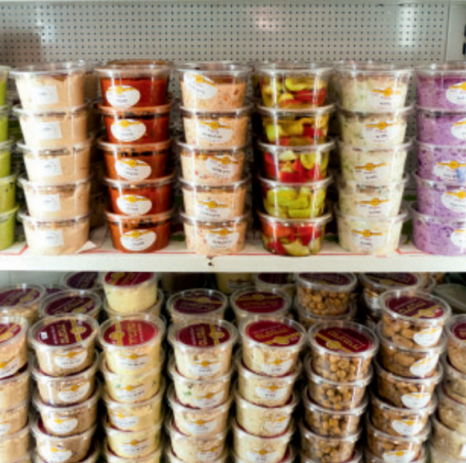 - Schep de hummus in een schaal, dek hem af met plasticfolie en laat hem minstens 30 minuten rusten. Zet de hummus als u hem niet meteen gebruikt afgedekt in de koelkast. Haal hem 30 minuten voor gebruik eruit.