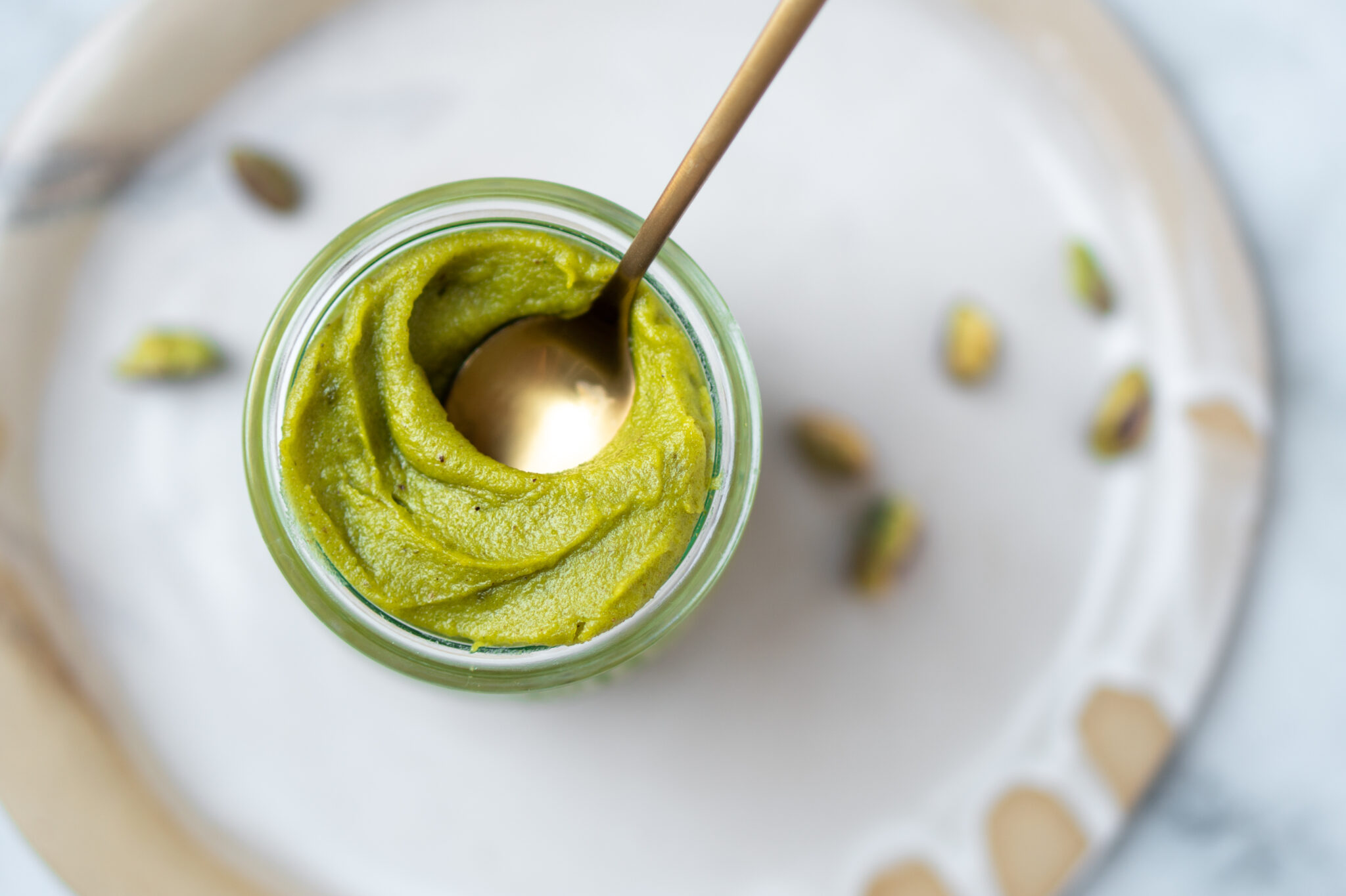 We hebben er al een tijdje een verslaving bij op de redactie en die heet pistachepasta (of pistache crème). Met dit recept maak je het zelf.