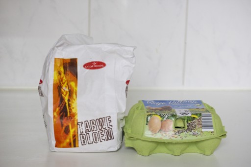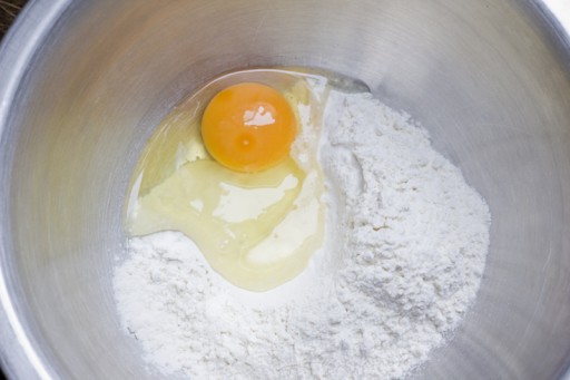 - Doe het ei en de bloem in een grote kom.