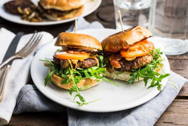 Hamburgers met gebakken champignons