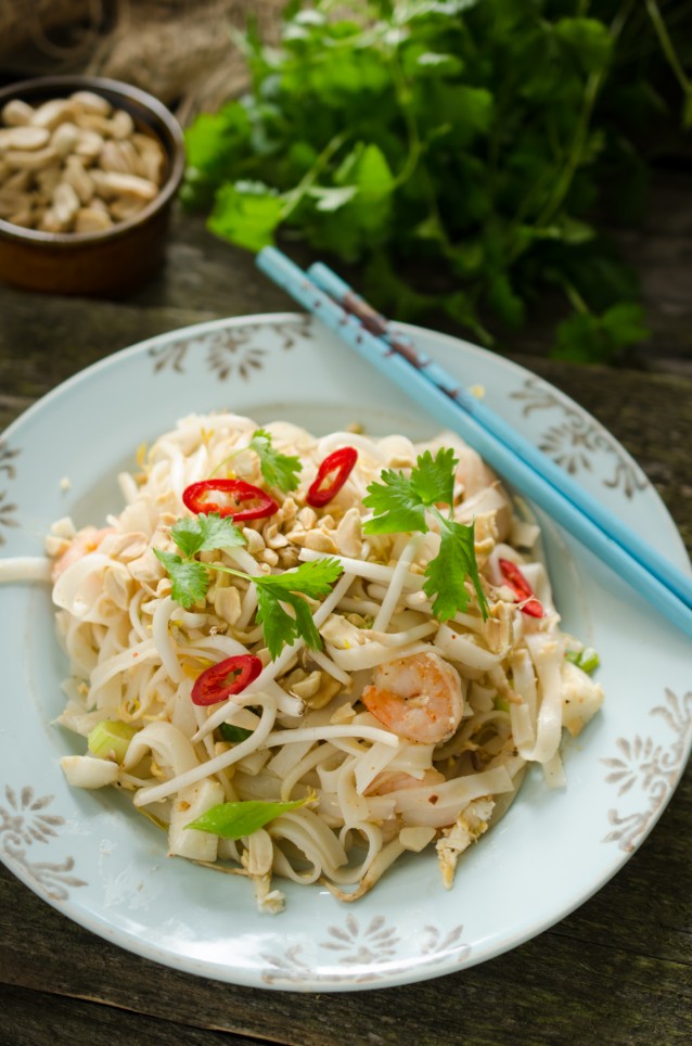 Een klein lesje Thais eten voor beginners. Pad thai betekent ‘gebakken noodles’, en dit is hét gerecht van Thailand. Er zijn talloze varianten; de ene chef gebruikt garnalen, de ander kip, weer een ander tofu. Varieer er vooral zelf op los: zie het als een Hollandse stamppot waar de één spekjes gebruikt, en de ander rookworst.