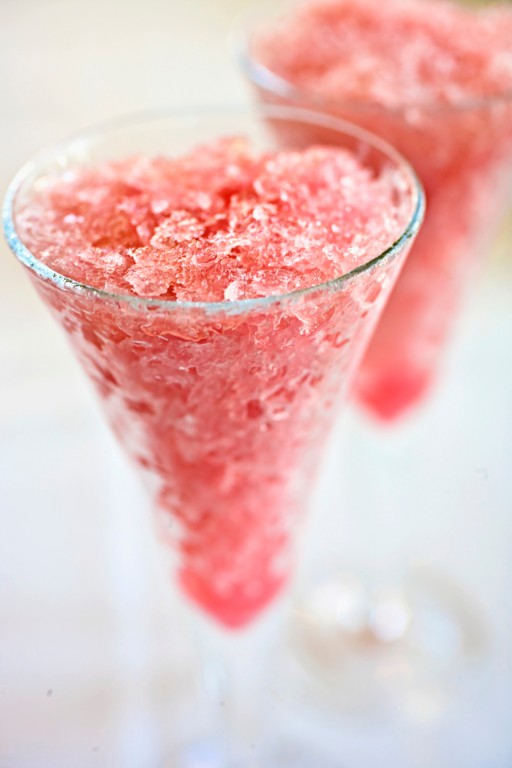 Gebruik een grote vork om de granita los te roeren en serveer vervolgens in een mooi hoog glas.