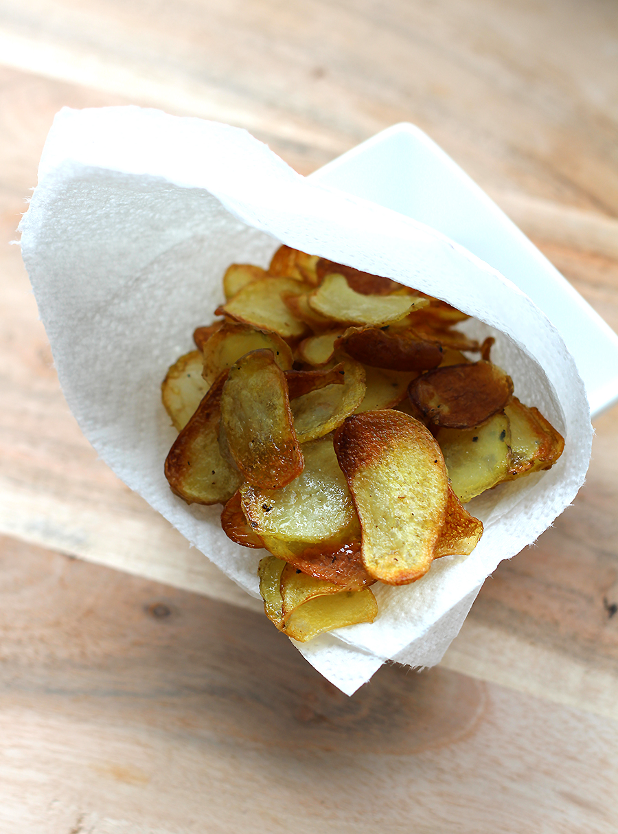 Zelfs chips maken is leuk, makkelijk én onwijs lekker. Je hebt flink wat aardappels én geduld nodig om een schaaltje te vullen, maar zodra je het als een soort therapie ziet, word je in no time helemaal zen in de keuken.