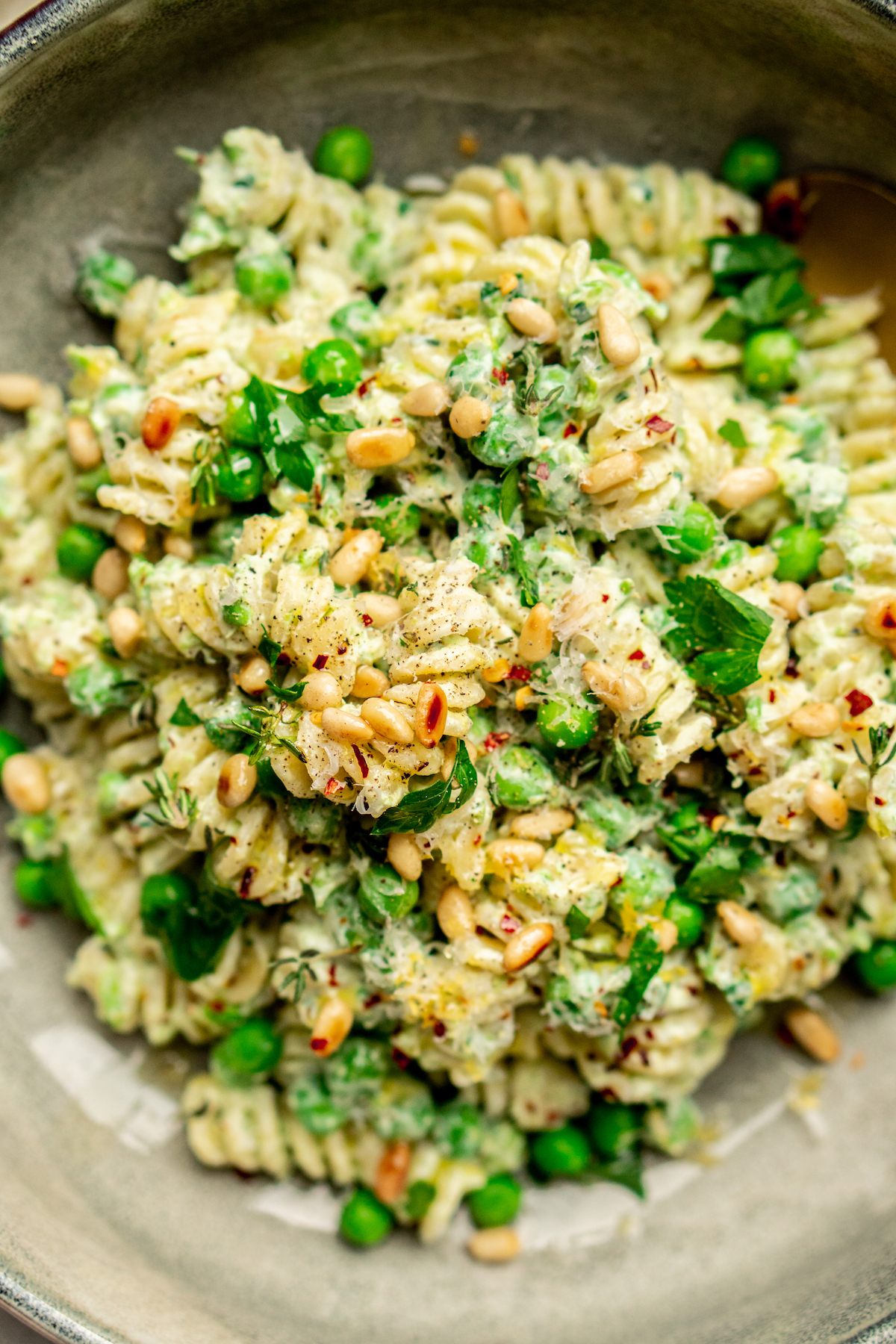 Voor de combinatie pasta + doperwten + citroen komen wij met liefde ons bed uit. Deze snelle zomerpasta staat binnen een mum van tijd op tafel, want de saus maak je in de keukenmachine. Verder is het een kwestie van pasta koken en pijnboompitten roosteren. Eitje dus!