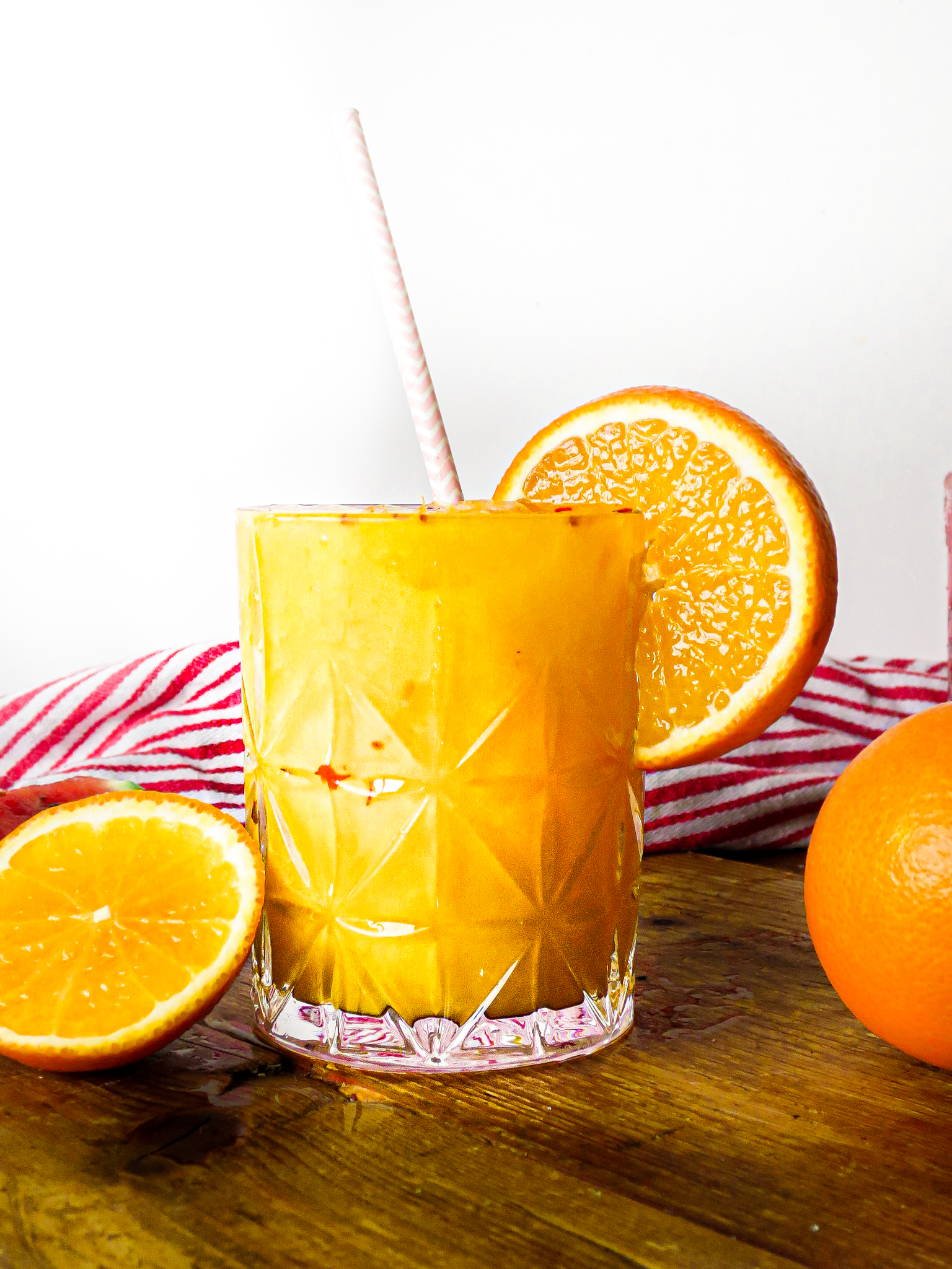 Wat zet je op tafel bij warm weer, als je wél verfrissing wil maar geen alcohol? Een kleurrijk en zomers drankje natuurlijk. Dit drankje met sinaasappelsap, oranjebloesem en chili is daar een ultiem voorbeeld van.