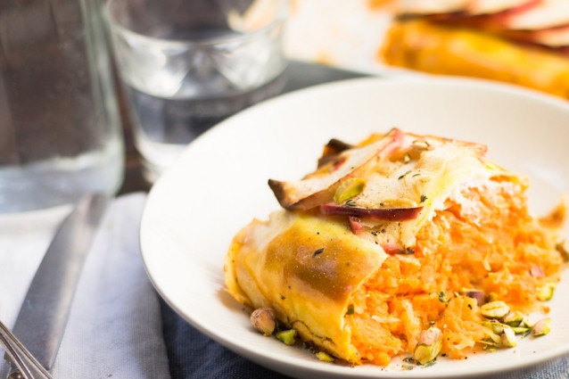 Dit recept is simpel en perfect voor een doordeweekseĀ dag: zuurkoolstamppot met zoete aardappel, appel en filodeeg.
