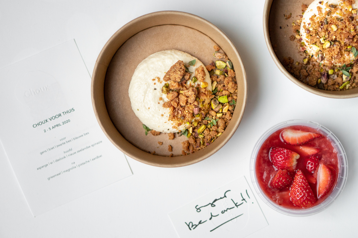 “Zo jongens, ik had nooit gedacht dat ik dit ooit zou doen”, begon chef Merijn een eerdere video. Het is en blijft een gekke tijd – voor iedereen – ook voor restaurants die gesloten moeten blijven en hun personeel. Dat is ook één van de redenen dat Choux niet thuis kan bezorgen, maar alleen de mogelijkheid tot afhalen kan aanbieden. “We zijn dit plan gestart uit nood om onze vaste lasten te kunnen betalen tijdens de huidige corona-crisis en het is dus onmogelijk voor ons om 25% of meer af te dragen aan bedrijven als UberEats of Deliveroo voor bezorging”, aldus het restaurant.