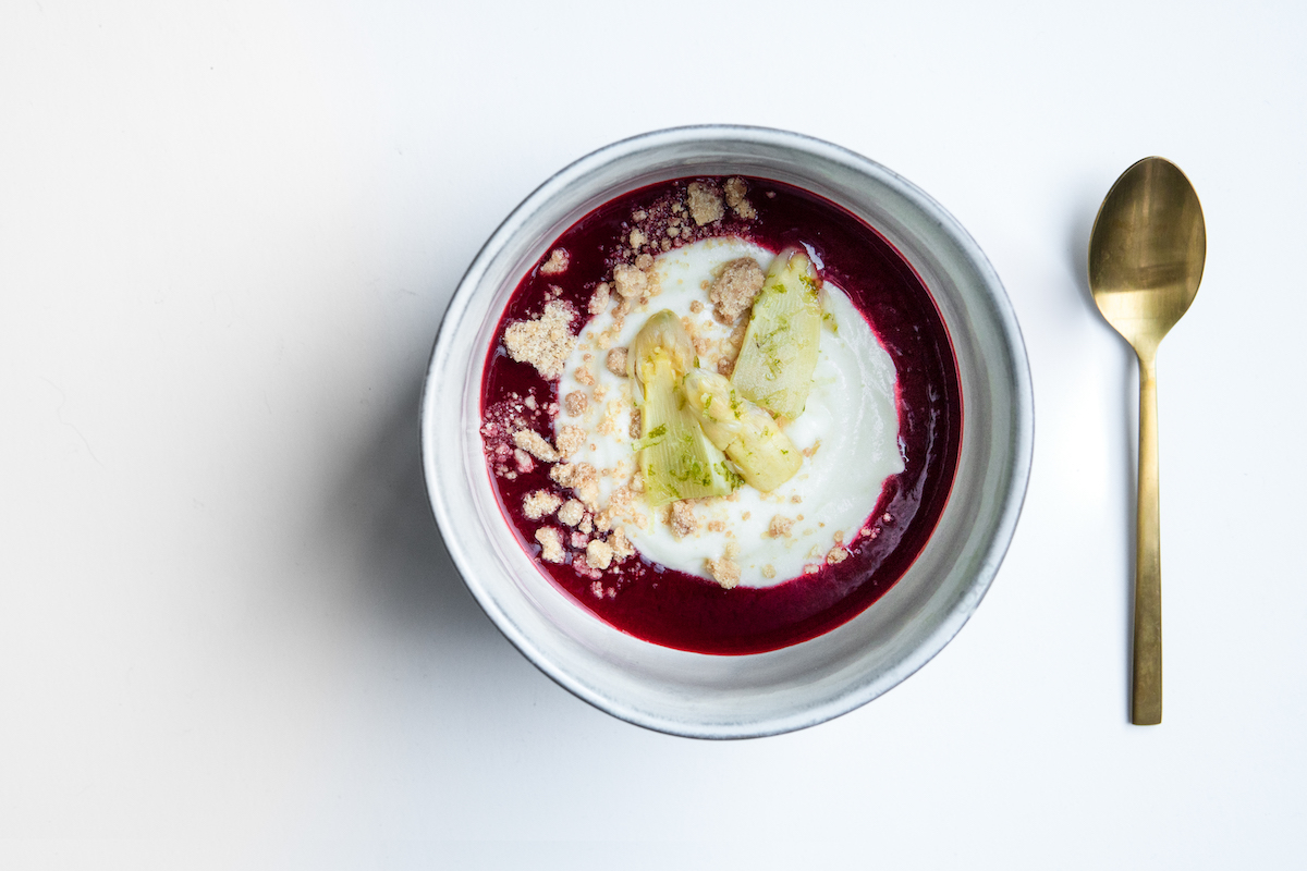 Ook gang drie is weer een echt Binnenvisser-bordje: mooie, uitgesproken smaken, en op het oog slechts een paar componenten op het bord. Biet, lamsoor, vlierbloesem en blauwe kaas blijken en wonderlijke combinatie te vormen. Je moet er maar net even opkomen.