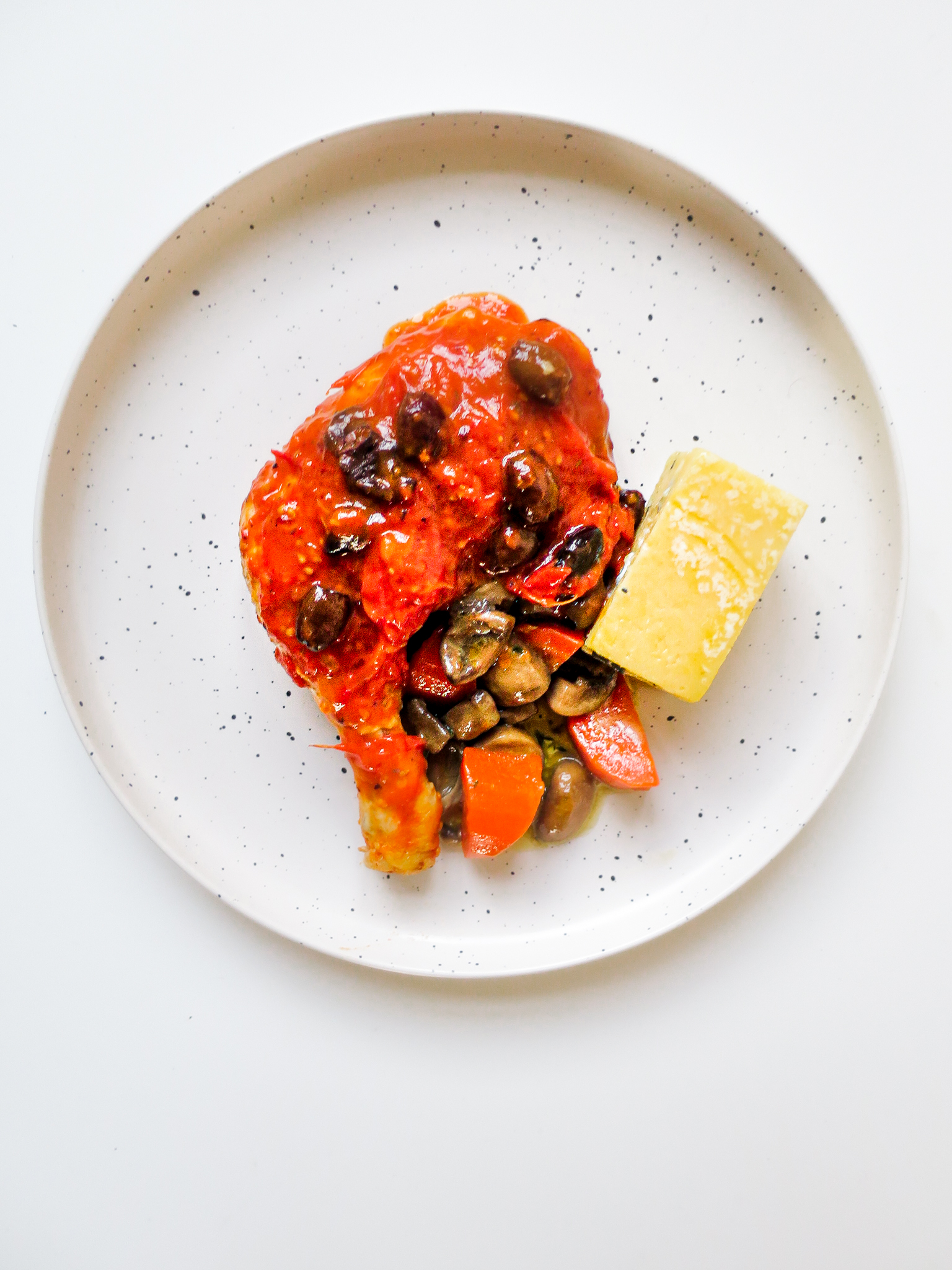 Van de kip in de Pollo Cacciatora dromen we momenteel nog: botermals en puur van smaak. Dat laatste vinden we trouwens ook uitzonderlijk goed aan zowel de polenta als de paddenstoelen.