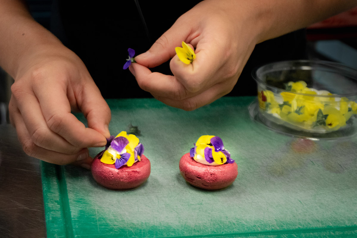 Op het moment dat we binnenkijken in de keuken, is het team er nog niet uit welke smaak scones ze gaan serveren. Één van de patissiers denkt aan de ingrediënten die ook naar voren komen in Flower Bomb, het parfum van Viktor & Rolf. “Vandaag móét de knoop worden doorgehakt”, zegt Vipin.