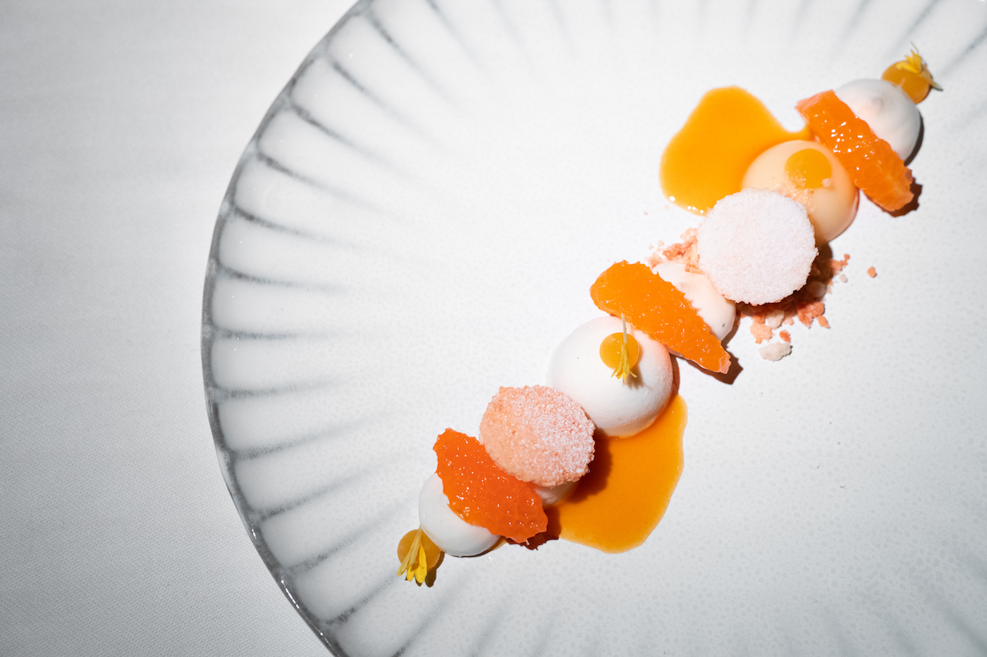 Die desserthemel weet Arturo ondertussen ook met beide benen op de begane grond te bereiken. Want in zijn dessert van mandarijn en kokos, is het alsof we een soort mandarijn op steroïden krijgen voorgeschoteld. De yuzu in het nagerecht, lijkt de citrussmaak van de mandarijn te versterken. Echt een tof effect.
