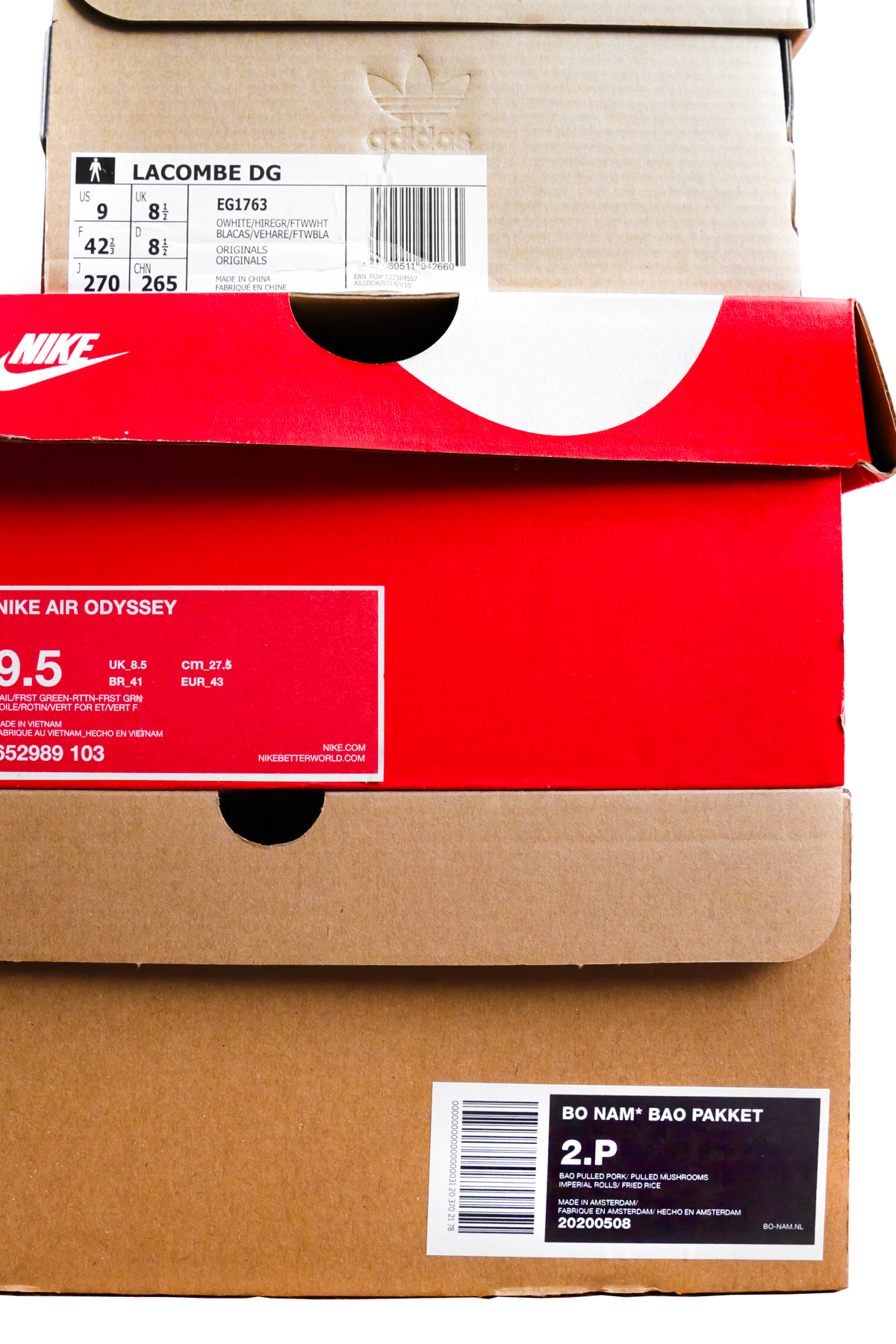 Staat hartstikke leuk, om met zo’n sneakerdoos onder je arm door Amsterdam te lopen. En ook de bewaarfactor is groot. Stapel ‘m op tussen je andere sneakerdozen en hij is niet van echt te onderscheiden. Zelfs het label waarop doorgaans de schoenmaat wordt aangeduid, is tot in detail nagemaakt.