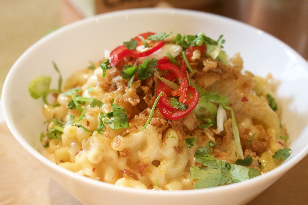 Er staan trouwens nog veel meer lekkere vega gerechtjes op het menu. Wat dacht je van een huisgemaakte oh na mi kimchi, of Mac ’n Kimcheese. We see what you did there.