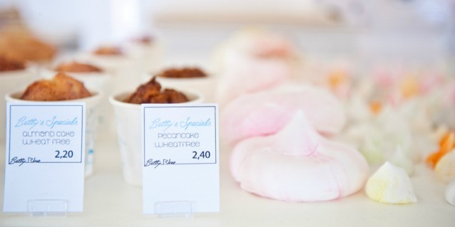 Yvette en Clara zijn de dames achter de patisserie (Yvette bakte al in haar eigen koffiespot in Amsterdam T eten en drinken). Jeroen is de man achter het interieur van Betty: Betty Blue heeft een clean uiterlijk met kleuraccenten die terugkomen in de prachtige gebakjes.