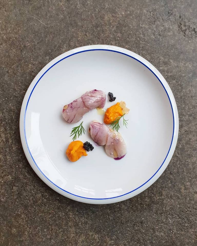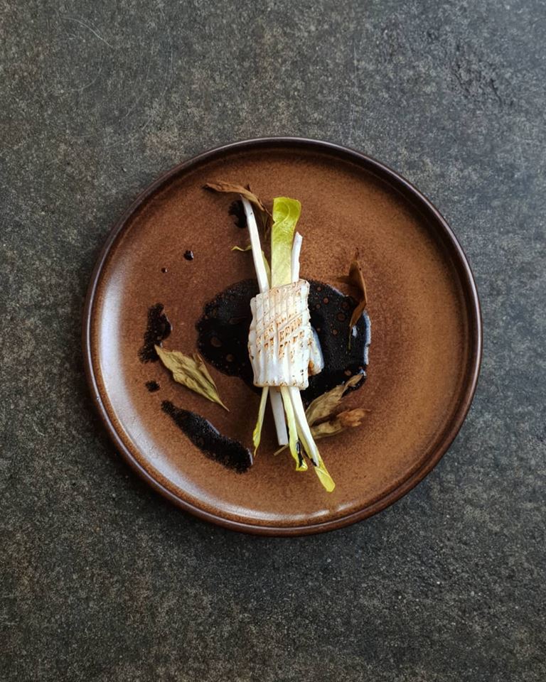 Hoe ziet dat er dan uit op een menukaart? Nou, die wisselt om te beginnen dagelijks. Per dag heb je keuze uit een menu van 3, 4 of 5 gangen (op moment van schrijven € 38,-, € 43,- en € 48,- euro). Daarop staan dus wild vlees, vis en groenten. Gerechtjes als aardappel met asperge, bloemkool, rabarber, daslook en eidooier bijvoorbeeld. Of inktvis met tomaat en inkt. Bordjes zonder al teveel ingrediënten of gefrutsel.
