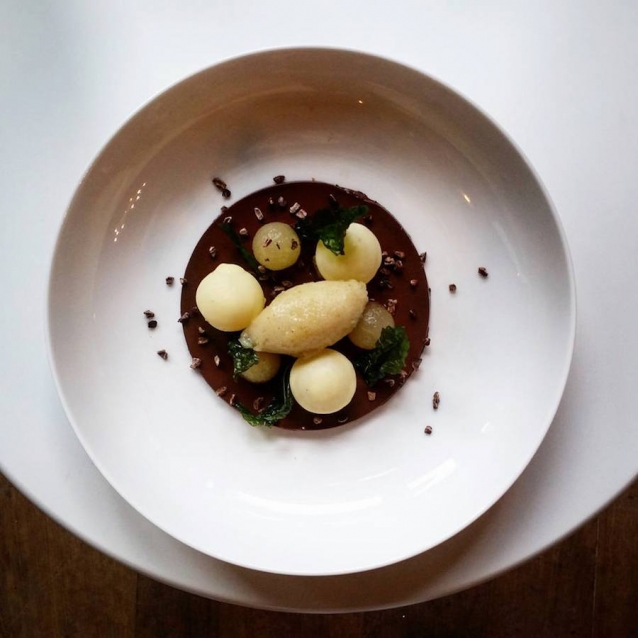 De hoofdgerechten op de kaart zijn al net zo bijzonder: van de geschroeide roodbaars met kokkel-gnocchi en gerookte appel crème fraîche tot aan de lamsschouder met zwezerik, rozemarijn-hummus, bulgur, bloemkool en lamsjus.
