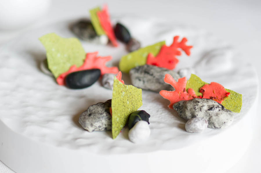 Blijf na het dessert ook zéker even hangen voor de friandises: die zijn helemaal de bom. De patissiers hebben allerlei fruits de mer nagemaakt van chocolade, room, praline en andere zoetigheden. Denk aan ‘oester’ met praline en hazelnoten, ‘zeeslakjes’ gevuld met crème caramel en ‘mosselen’ met duindoornbes, passievrucht en crème fraîche.