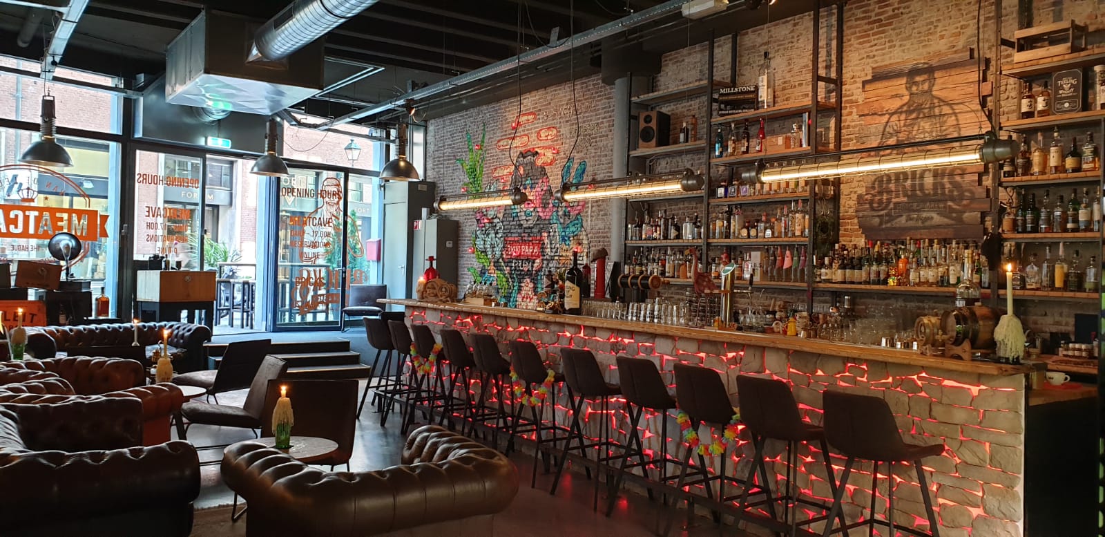 De twee werken nauw samen, dus dat betekent dat je met jouw cocktail (ja, echt helemaal van jou!) gewoon plaats kunt nemen in restaurant Meatcave. Ook kun je aan de bar van Bricks hapjes bestellen uit het restaurant.